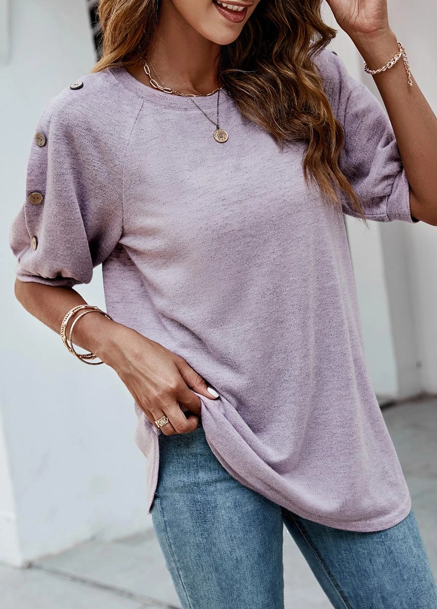 Be the first to review “Purple Decorative Button Half Sleeve T Shirt” Cancel reply