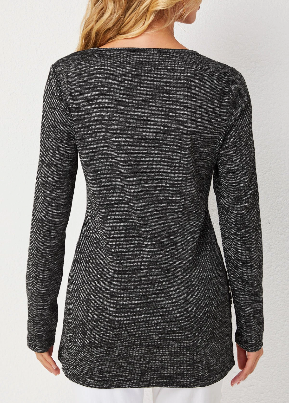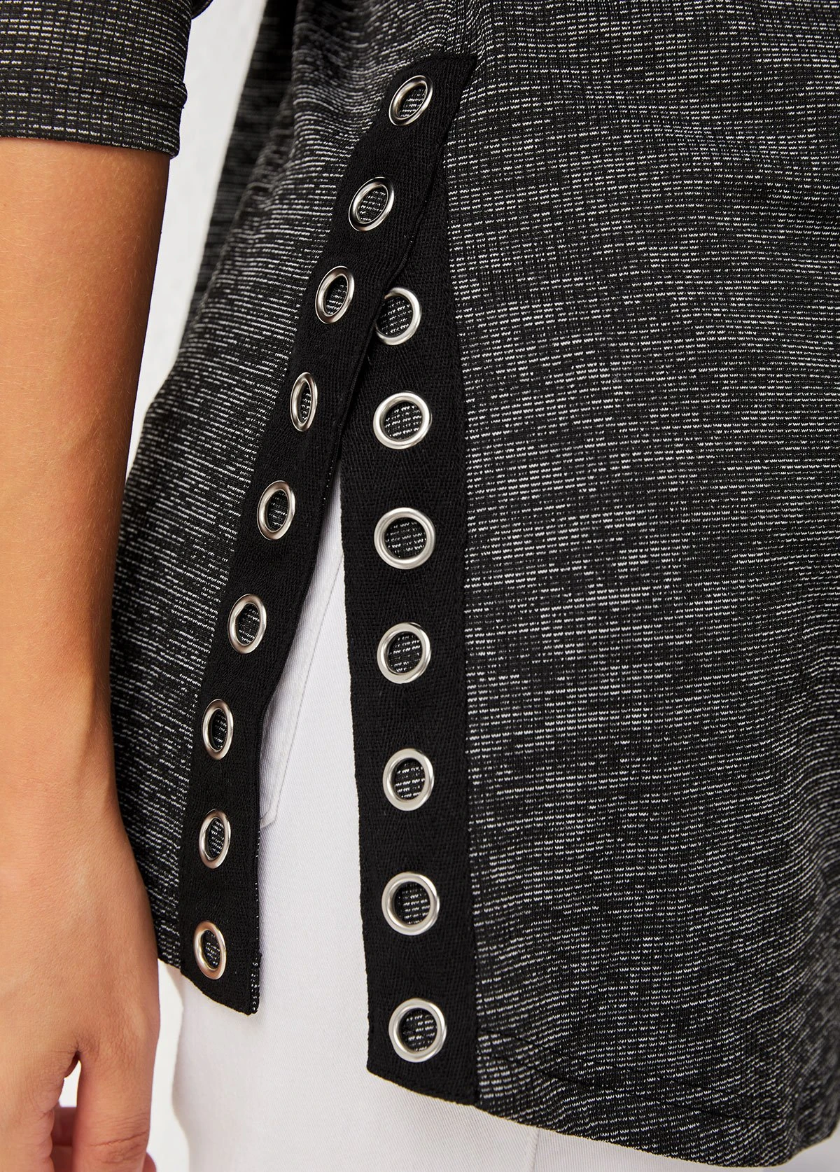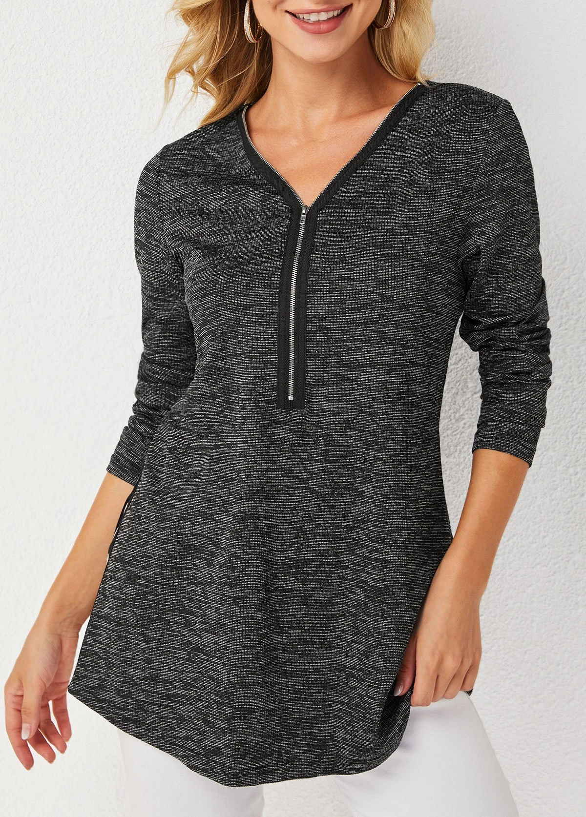 Quarter Zip Long Sleeve V Neck Eyelet Sweatshirt