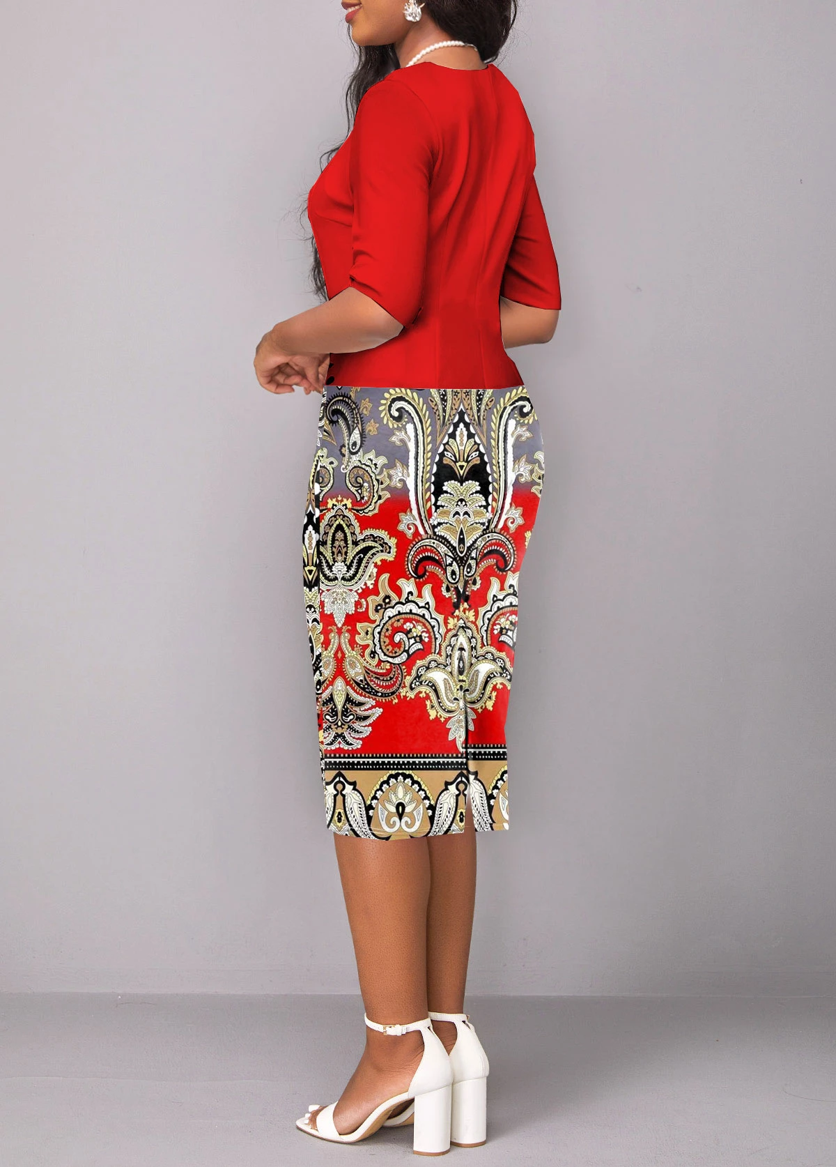 Red Fake 2in1 African Tribal Print Bodycon Dress