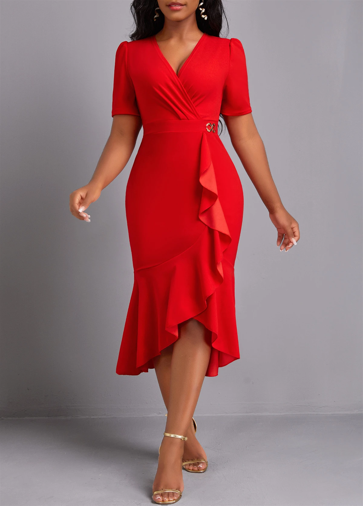 Red High Low Short Sleeve Mermaid Dress