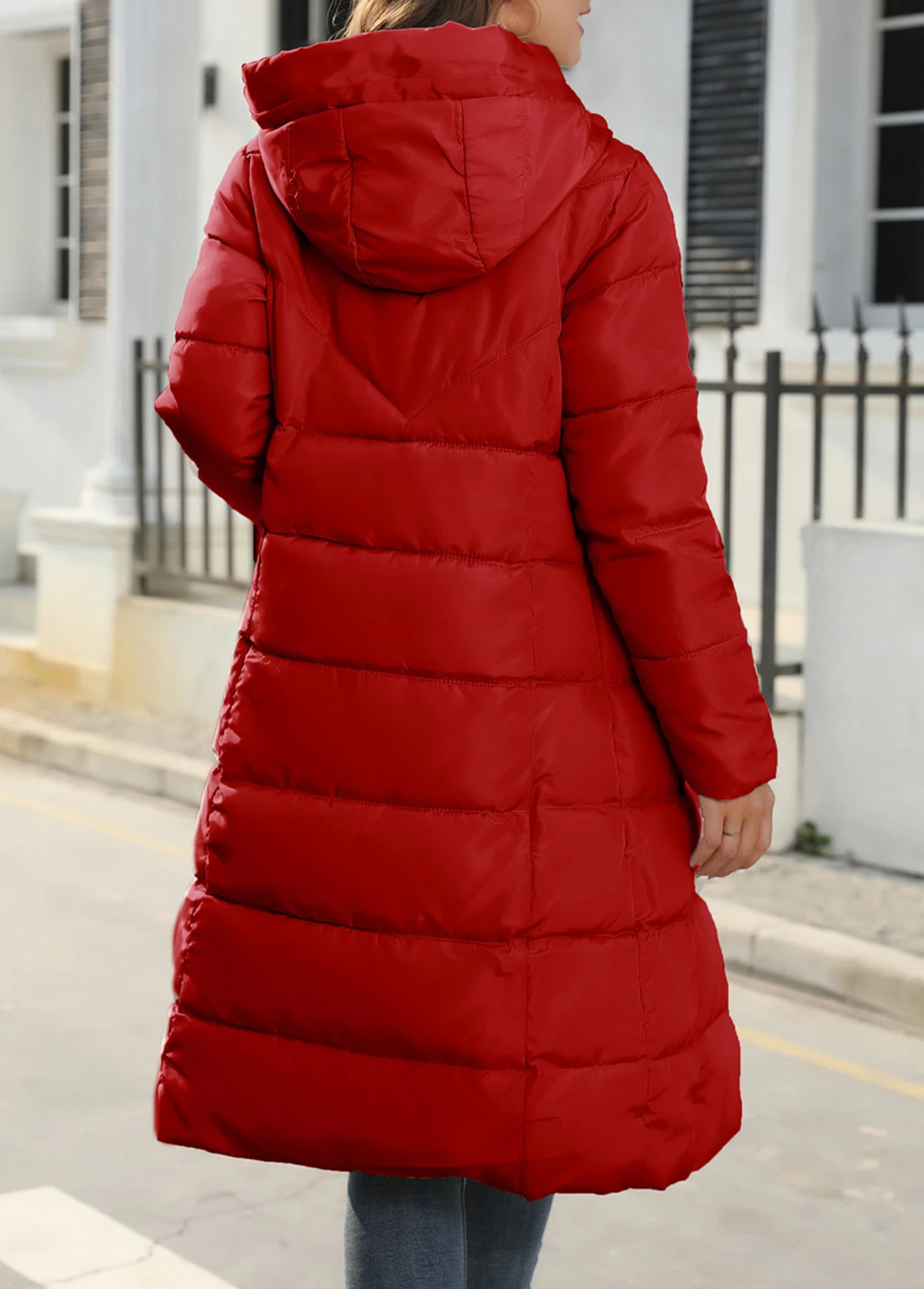 Be the first to review “Red Pocket Long Sleeve Hooded Coat” Cancel reply