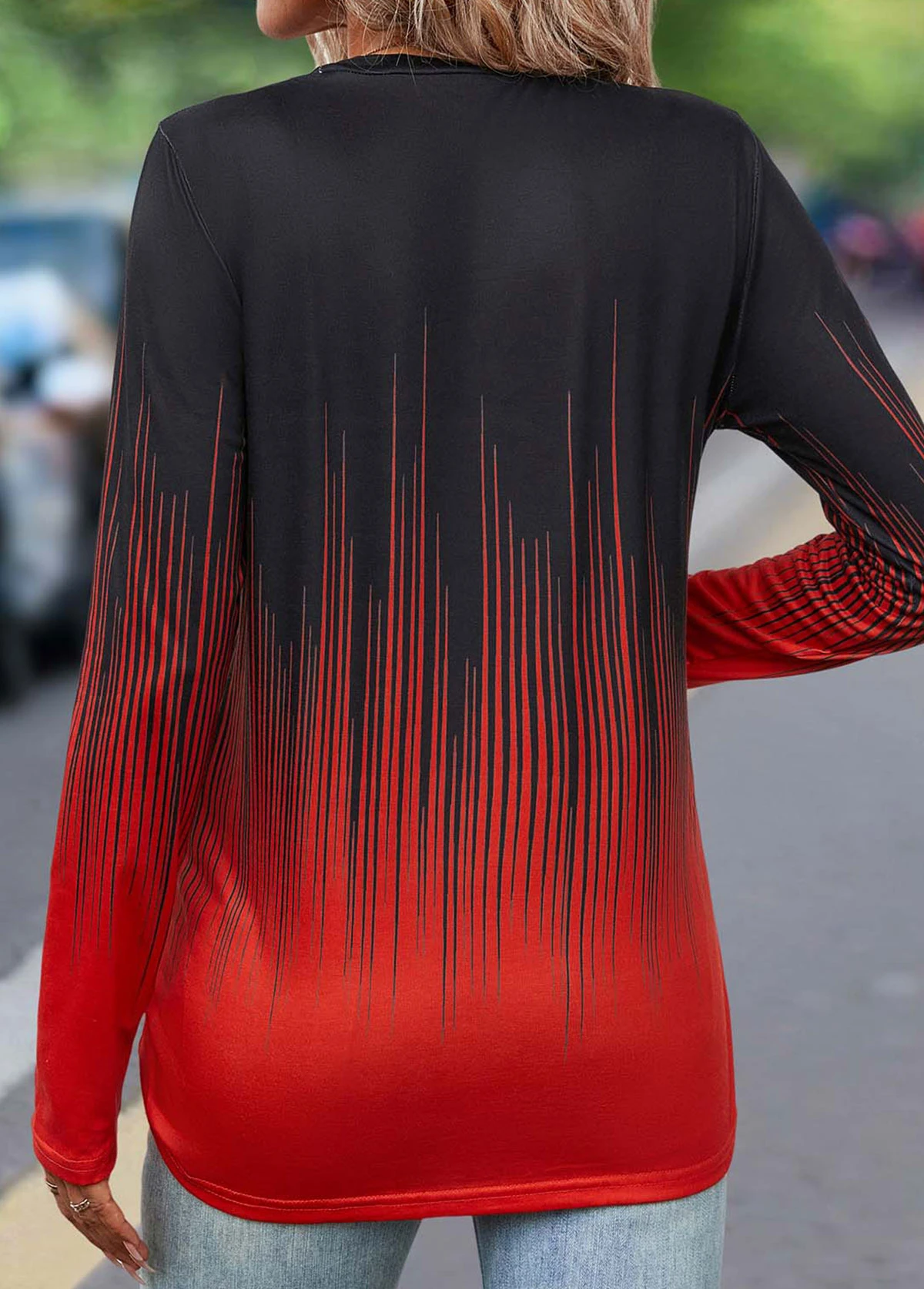 Red Twist Ombre Long Sleeve Round Neck T Shirt