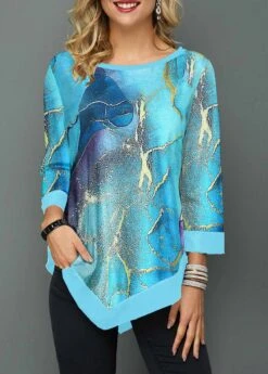 Be the first to review “Round Neck Cyan Patchwork Ombre T Shirt” Cancel reply