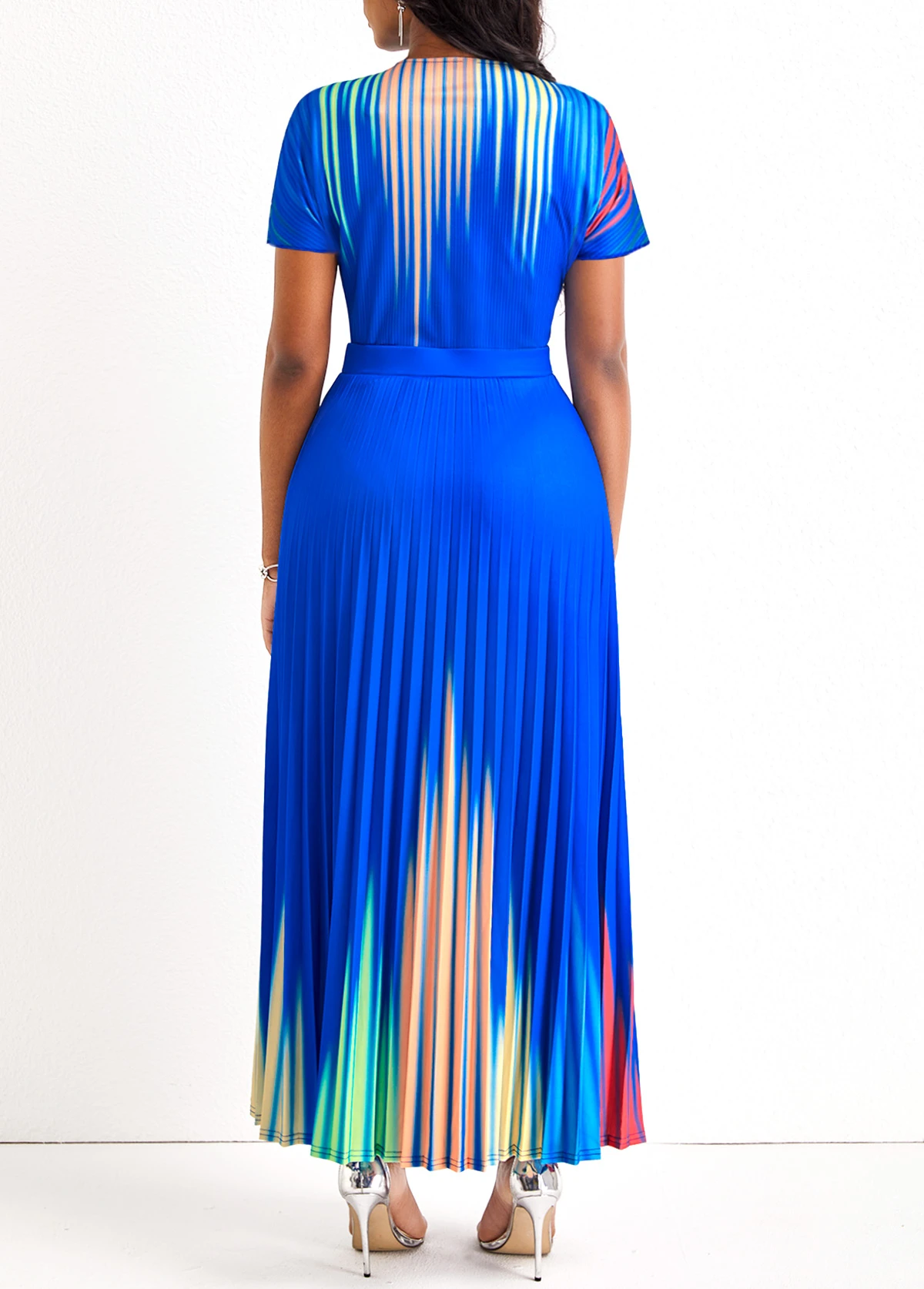 Royal Blue Pleated Ombre Short Sleeve Maxi Dress
