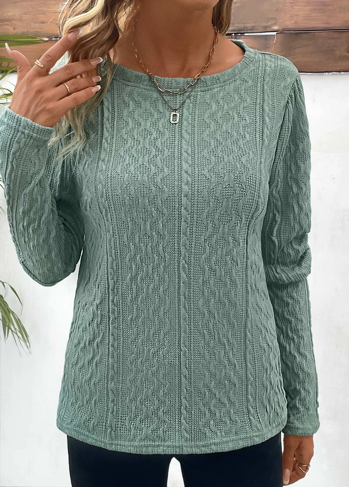 Be the first to review “Sage Green Ruched Long Sleeve Round Neck T Shirt” Cancel reply