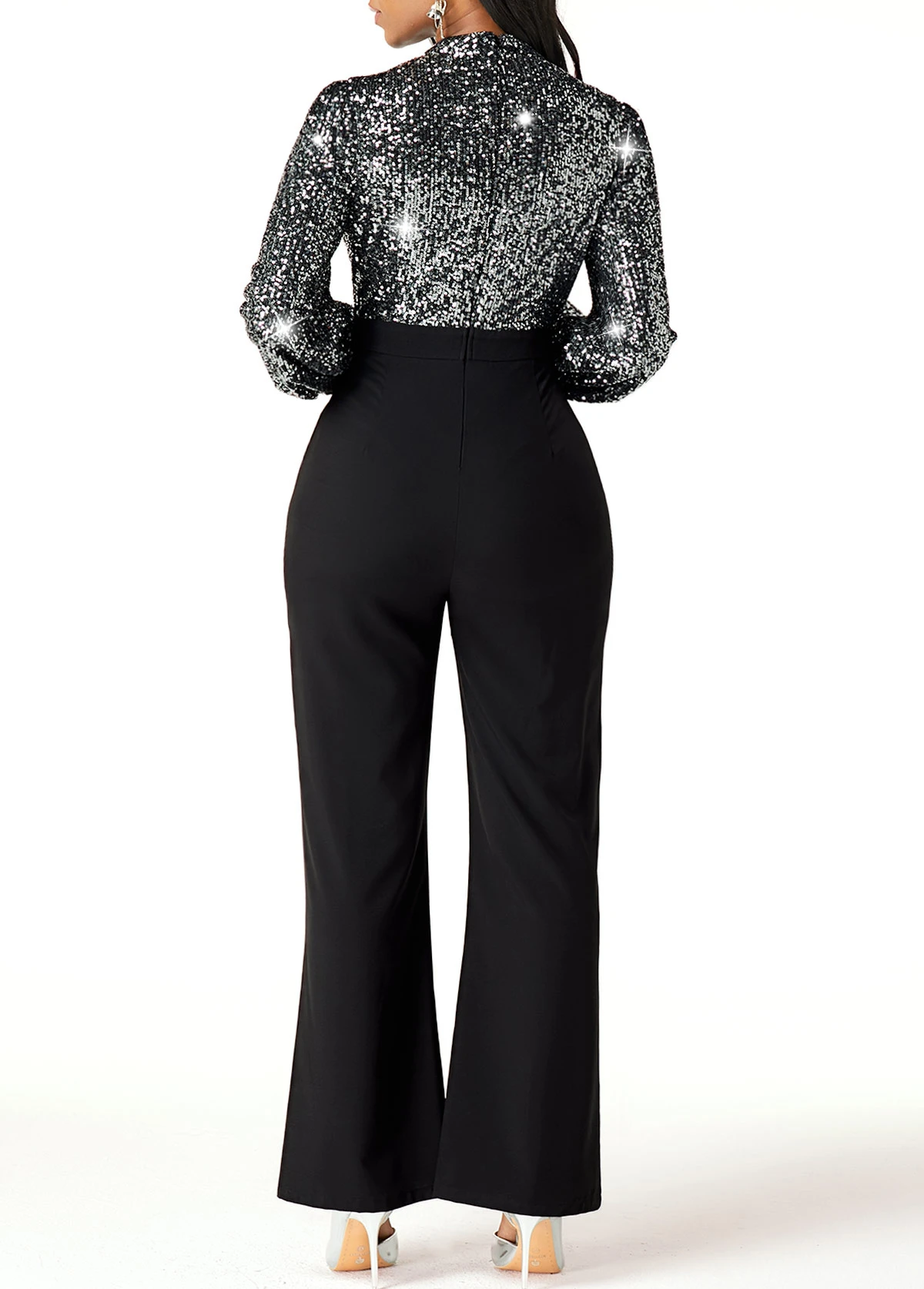 Sequin Embellished High Waist Cutout Front Jumpsuit