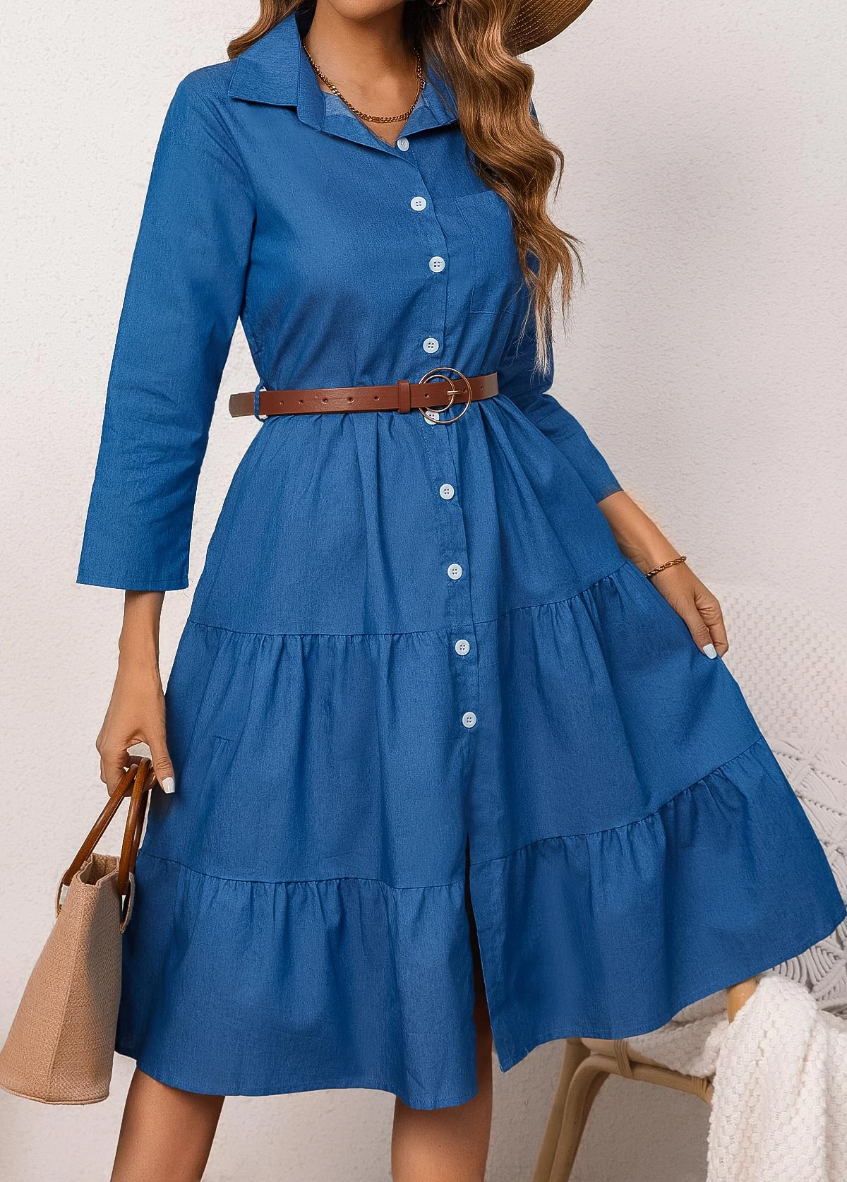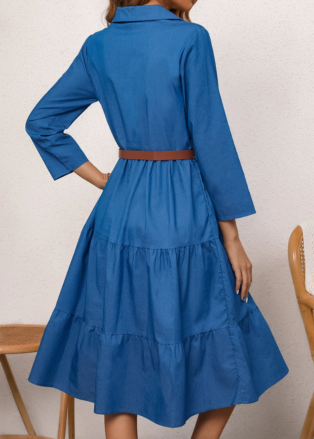 Be the first to review “Shirt Collar Denim Blue Button Belted Dress” Cancel reply
