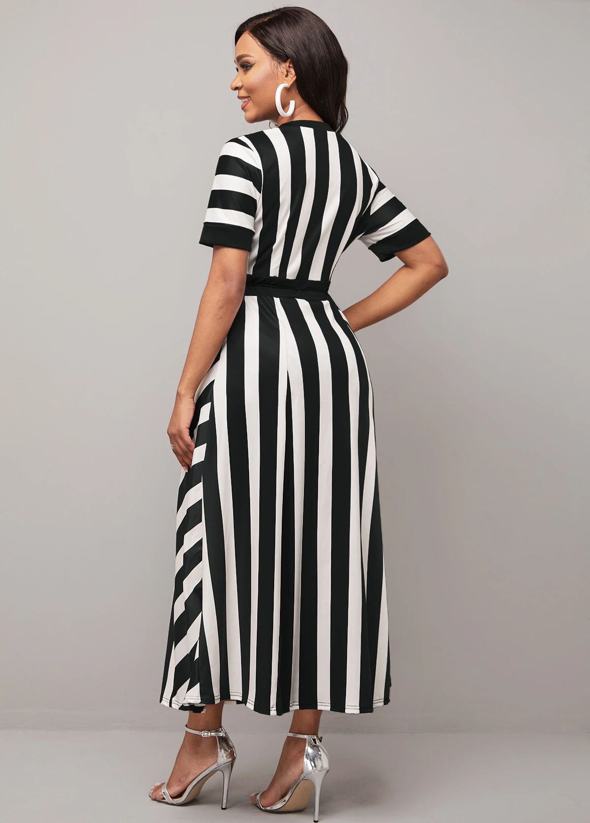 Be the first to review “Striped Round Neck Belted Color Block Dress” Cancel reply