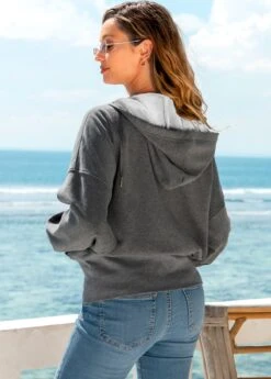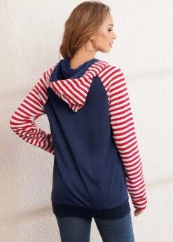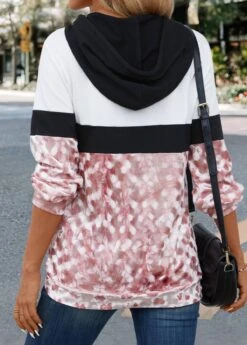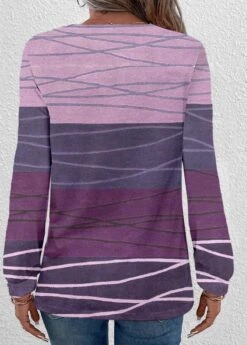 Dark Reddish Purple Patchwork Long Sleeve Round Neck Sweatshirt