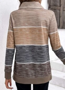 Multi Color Drawstring Striped Long Sleeve Cowl Neck Sweatshirt