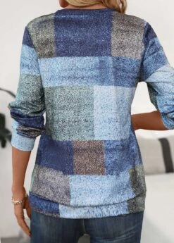 Multi Color Patchwork Geometric Print Long Sleeve Sweatshirt