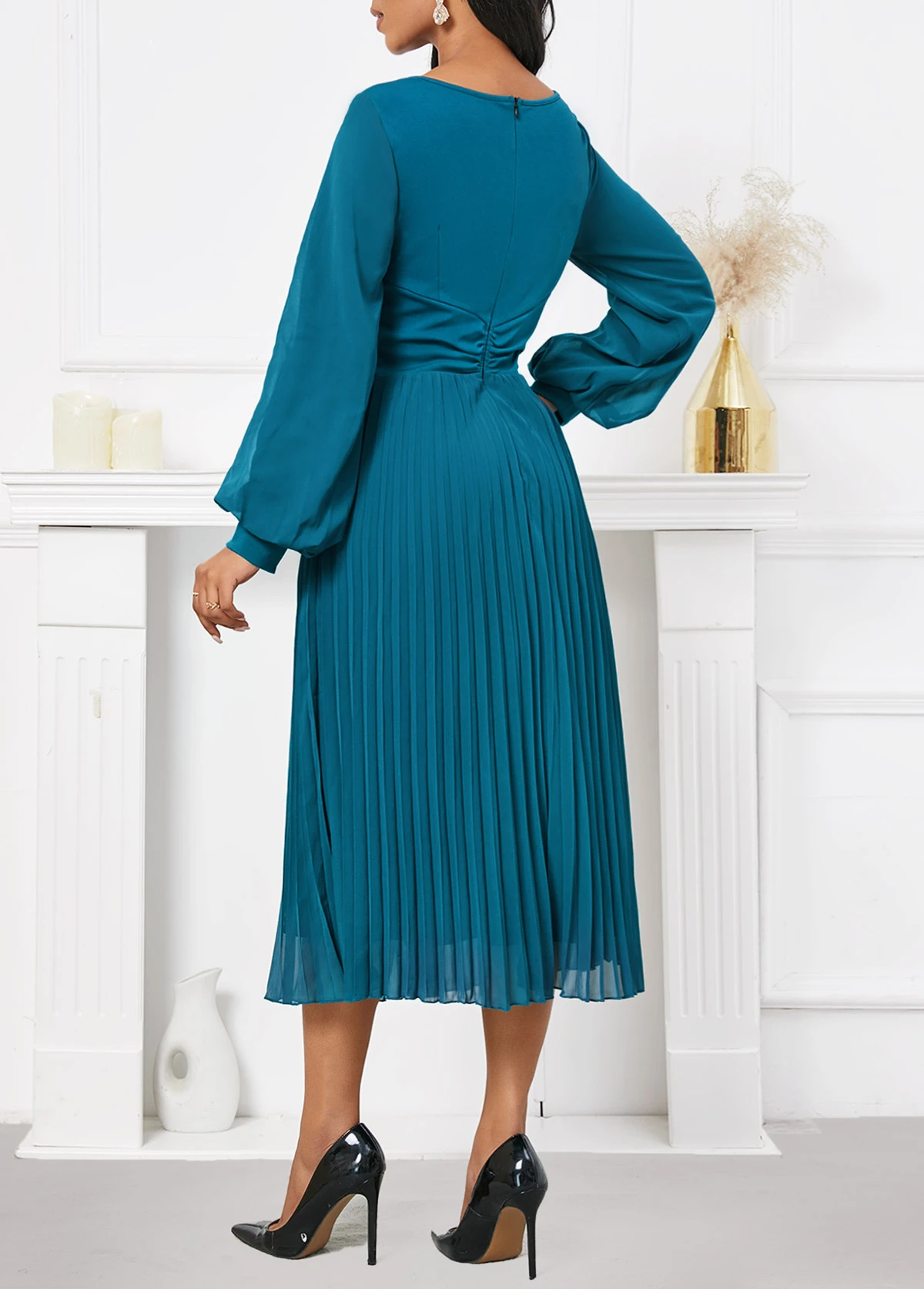 Be the first to review “Turquoise Pleated Long Sleeve V Neck Dress” Cancel reply