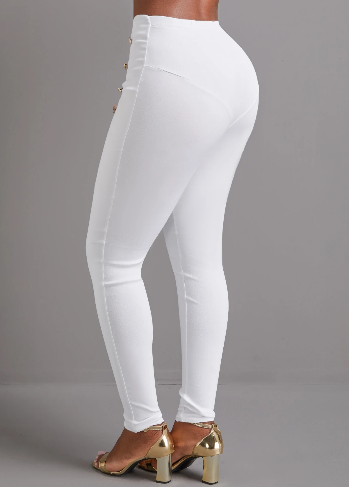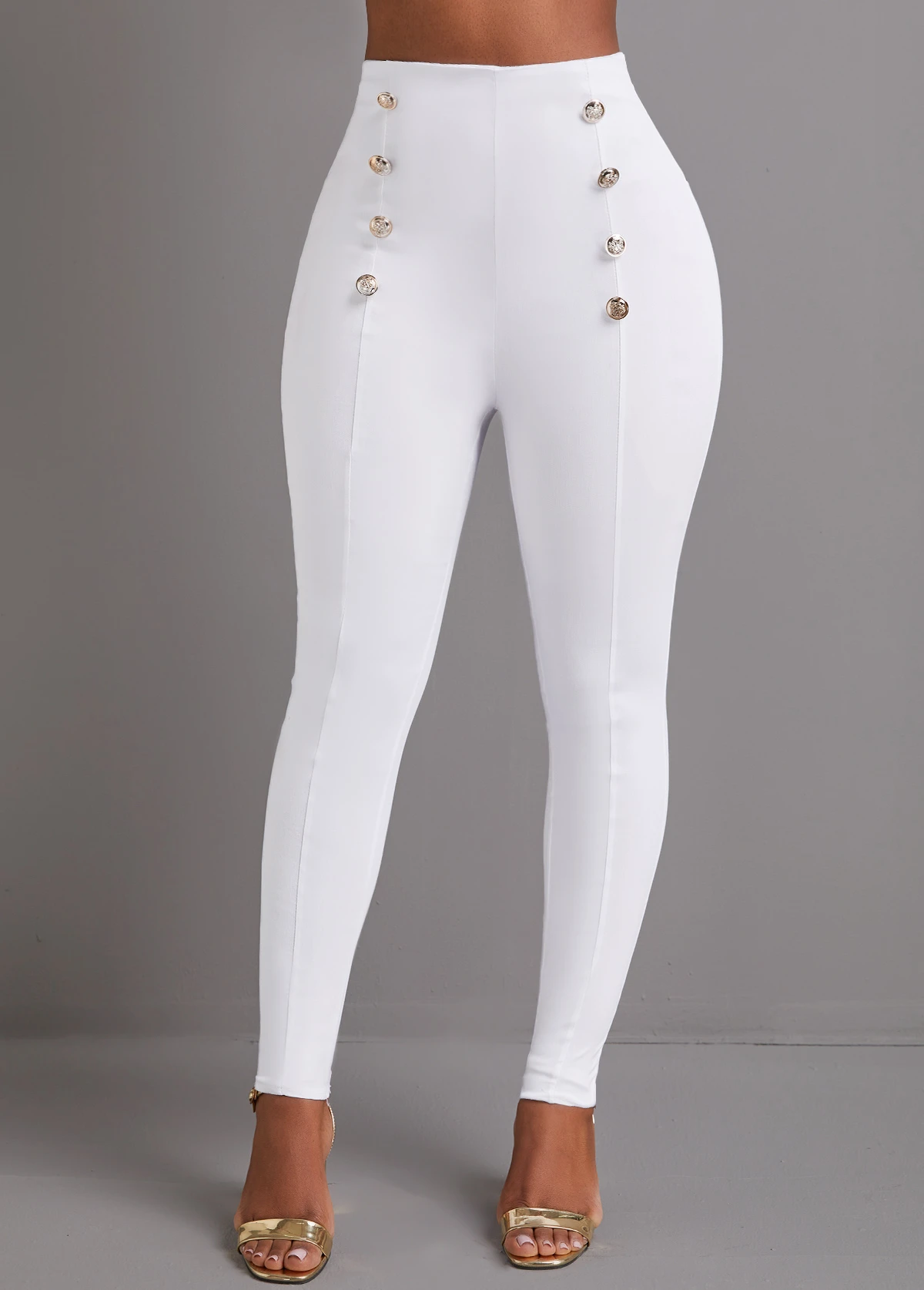 Be the first to review “White Button Skinny Elastic Waist High Waisted Pants” Cancel reply