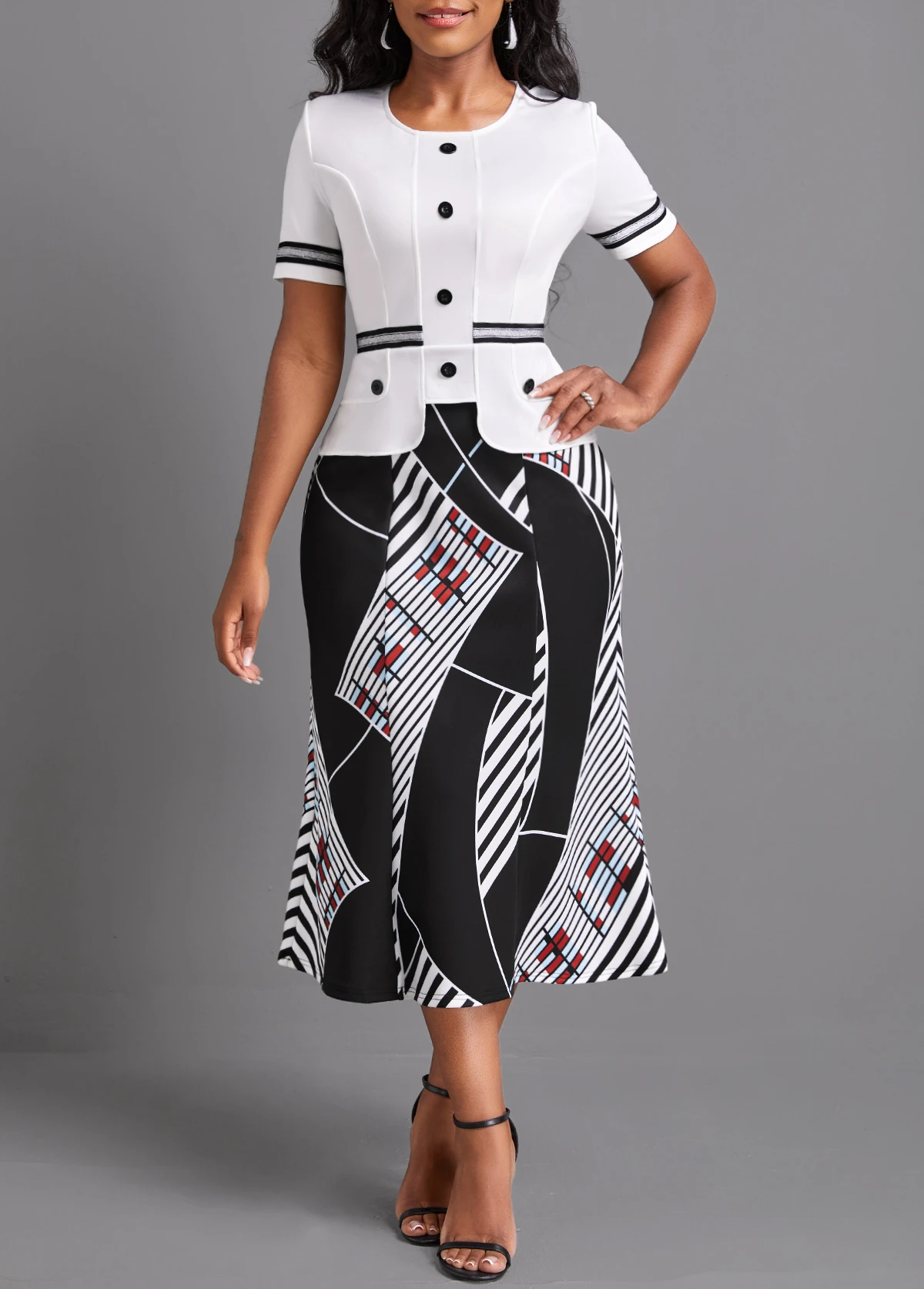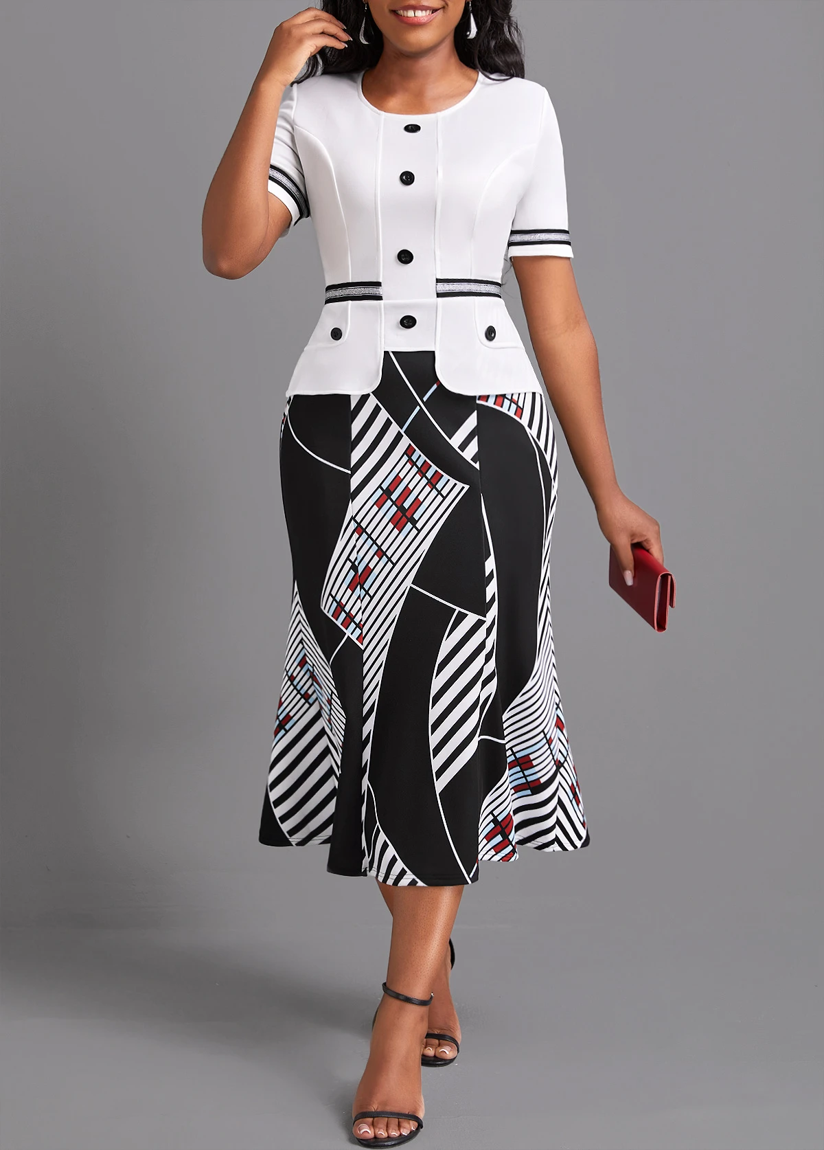 Be the first to review “White Contrast Binding Geometric Print Bodycon Dress” Cancel reply
