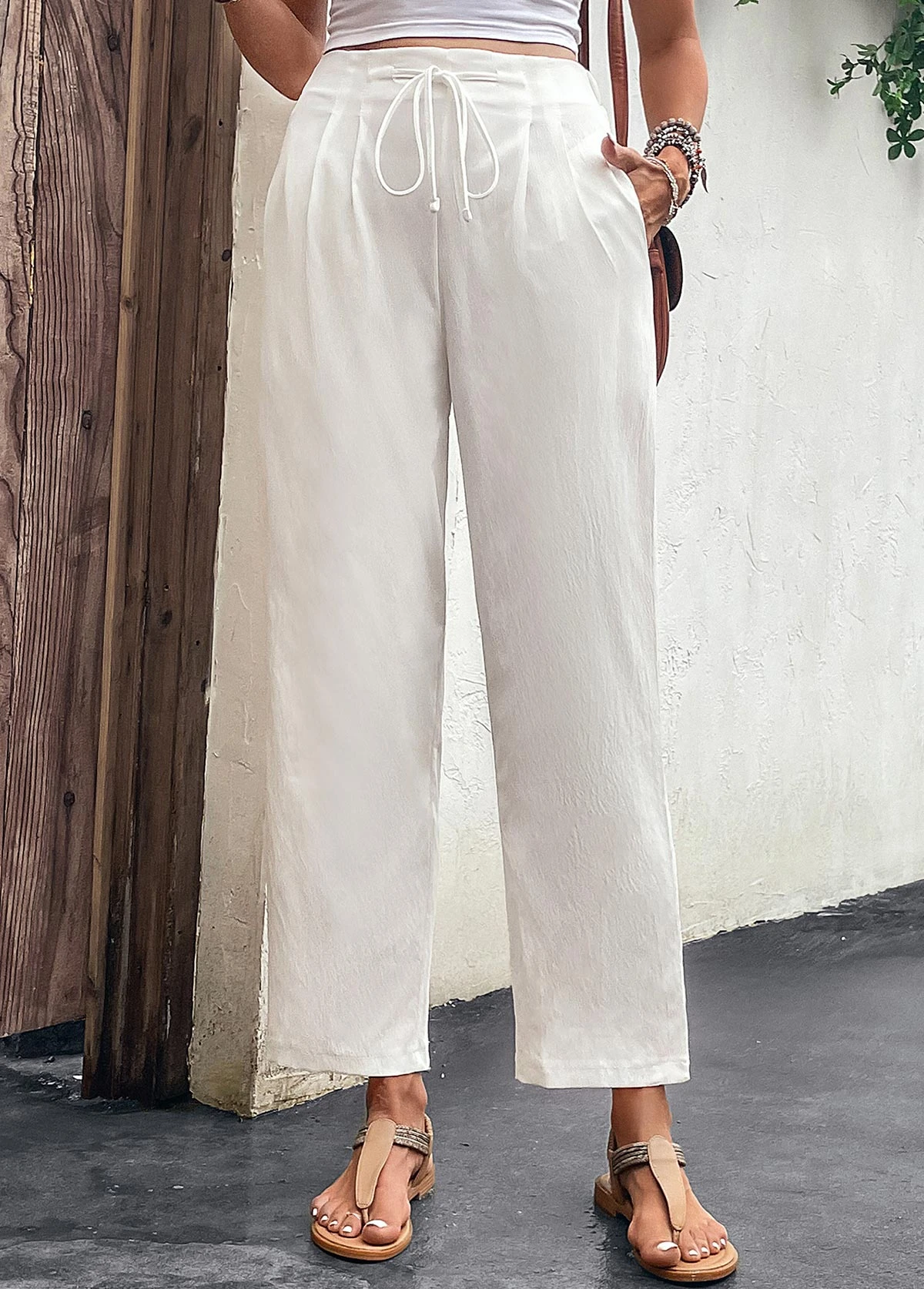 White Pocket Drawastring High Waisted Pants