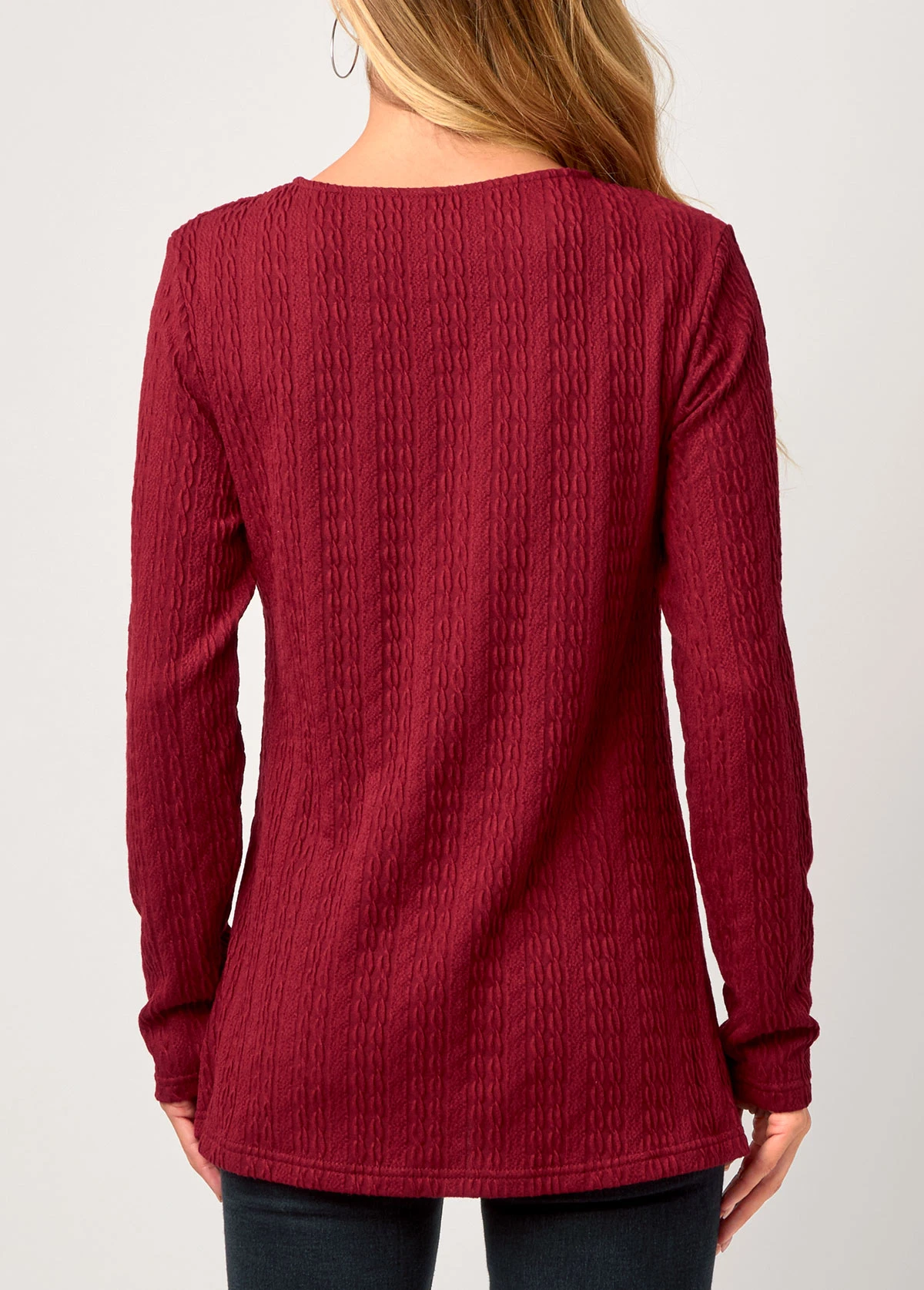 Wine Red Asymmetric Hem Long Sleeve Valentines Sweatshirt