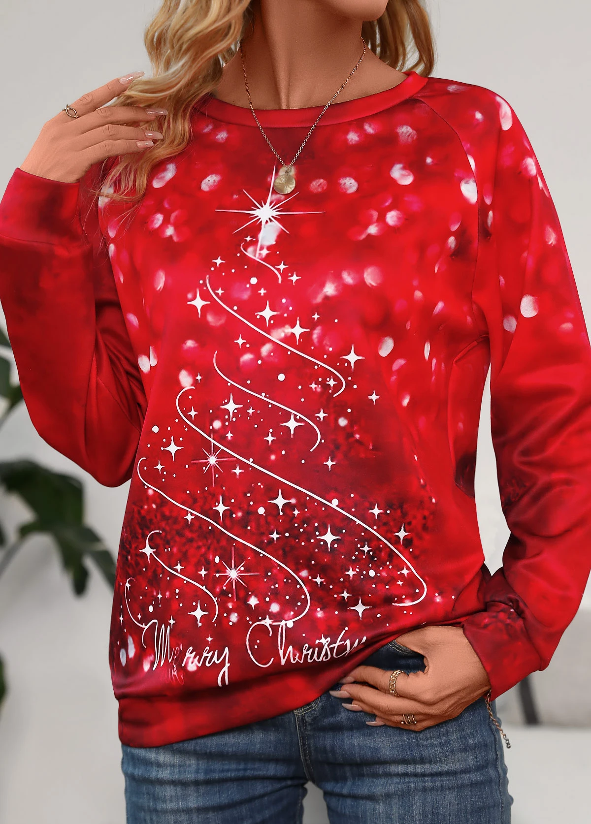 Be the first to review “Wine Red Christmas Tree Print Long Sleeve Sweatshirt” Cancel reply