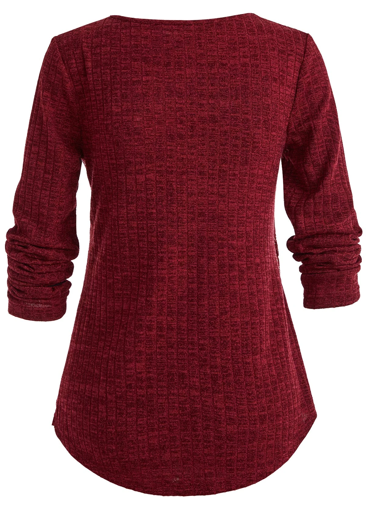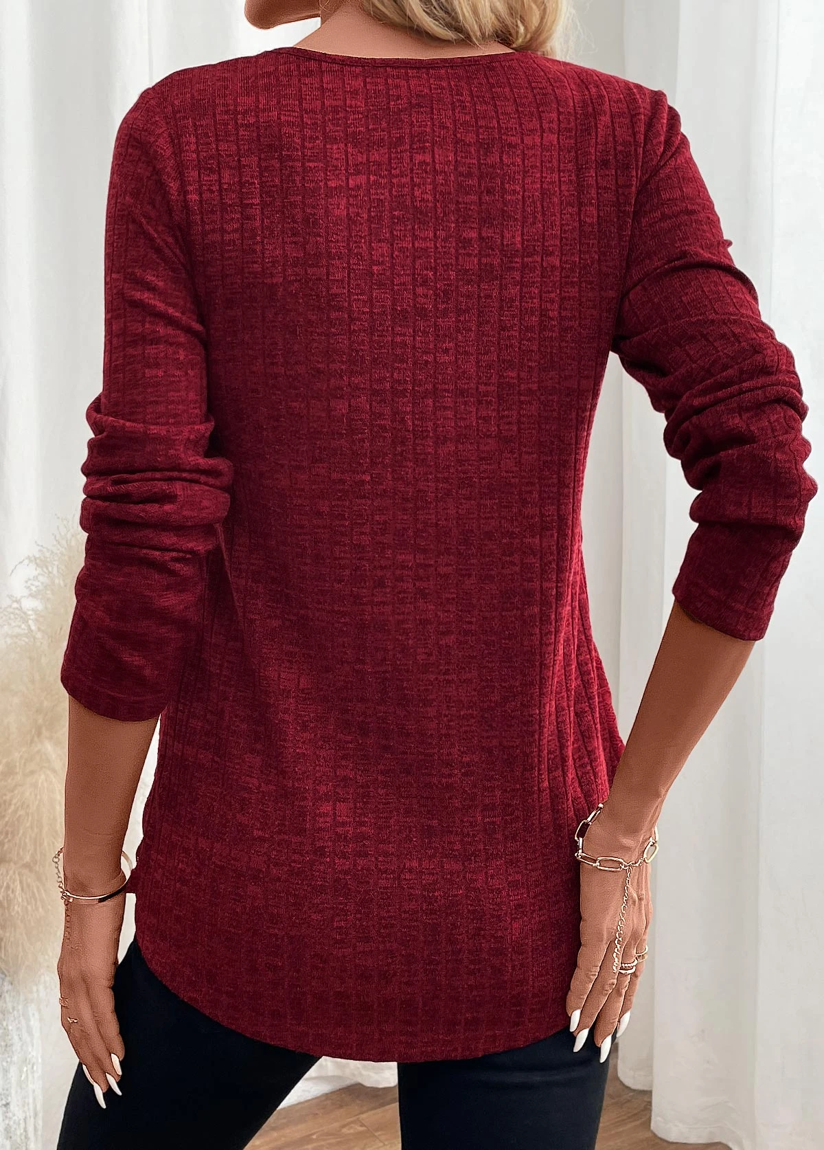 Wine Red Fake 2in1 Long Sleeve T Shirt