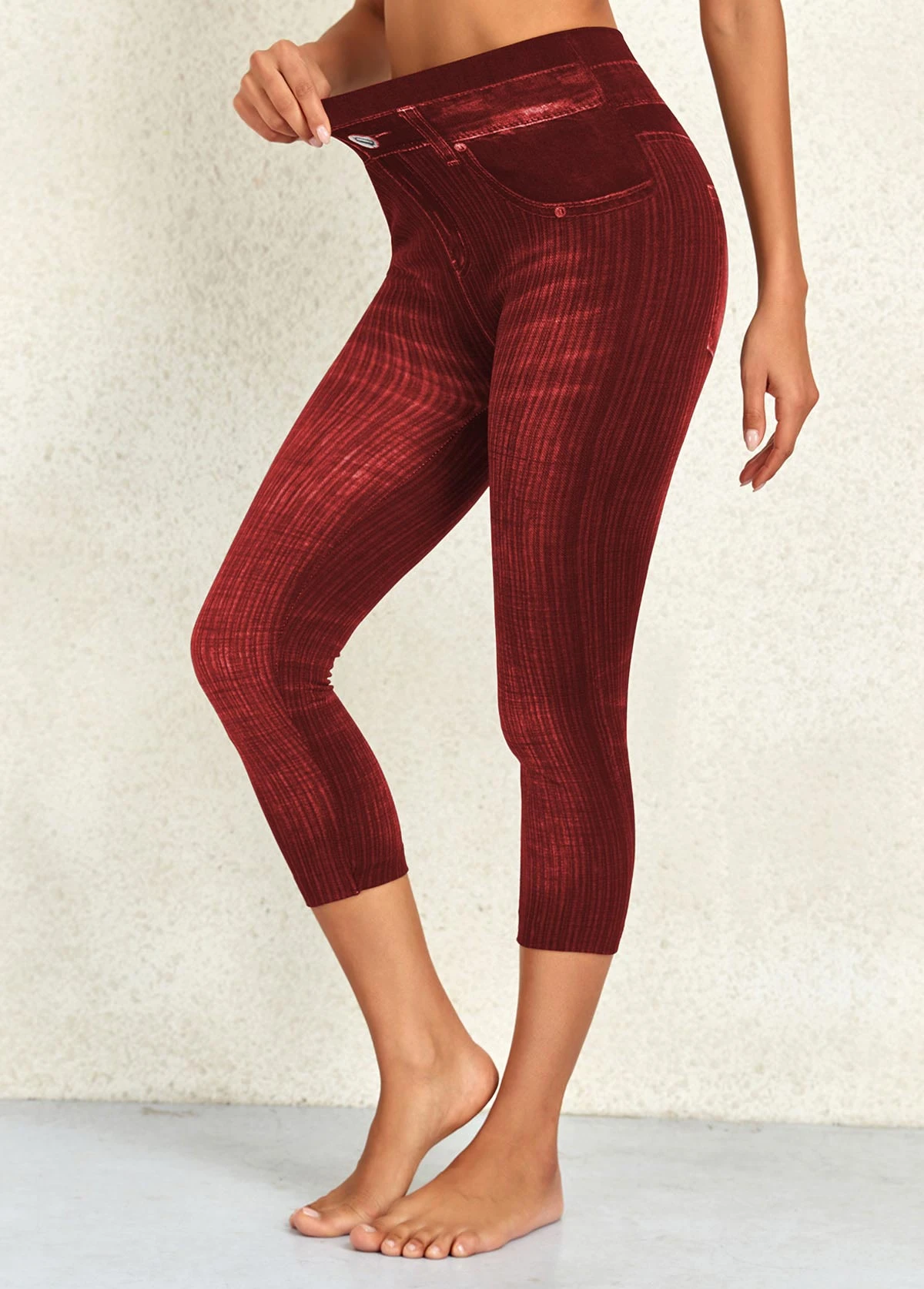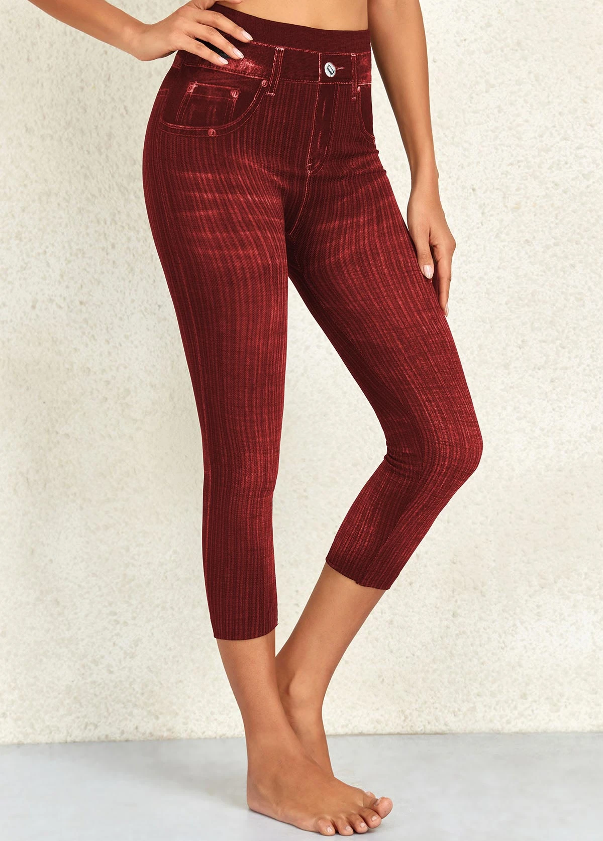 Wine Red High Waisted Capri Elastic Waist Leggings