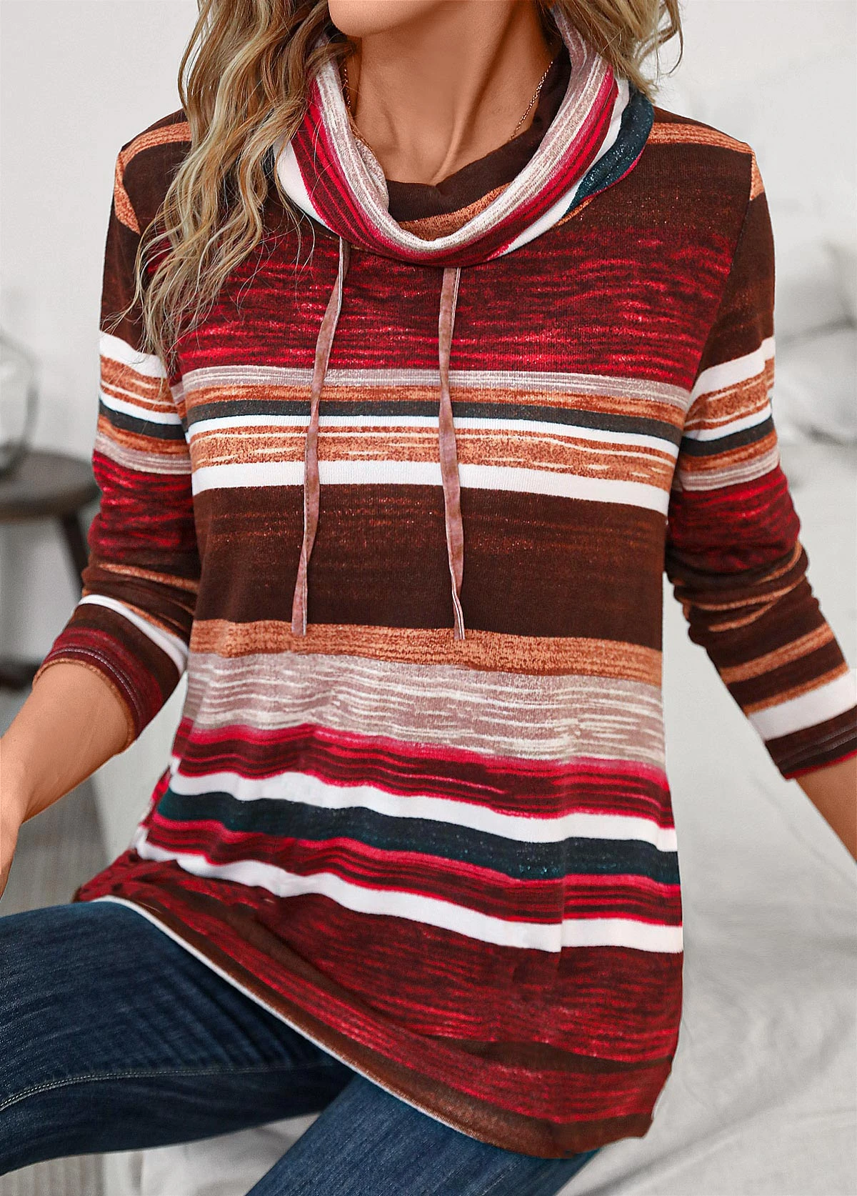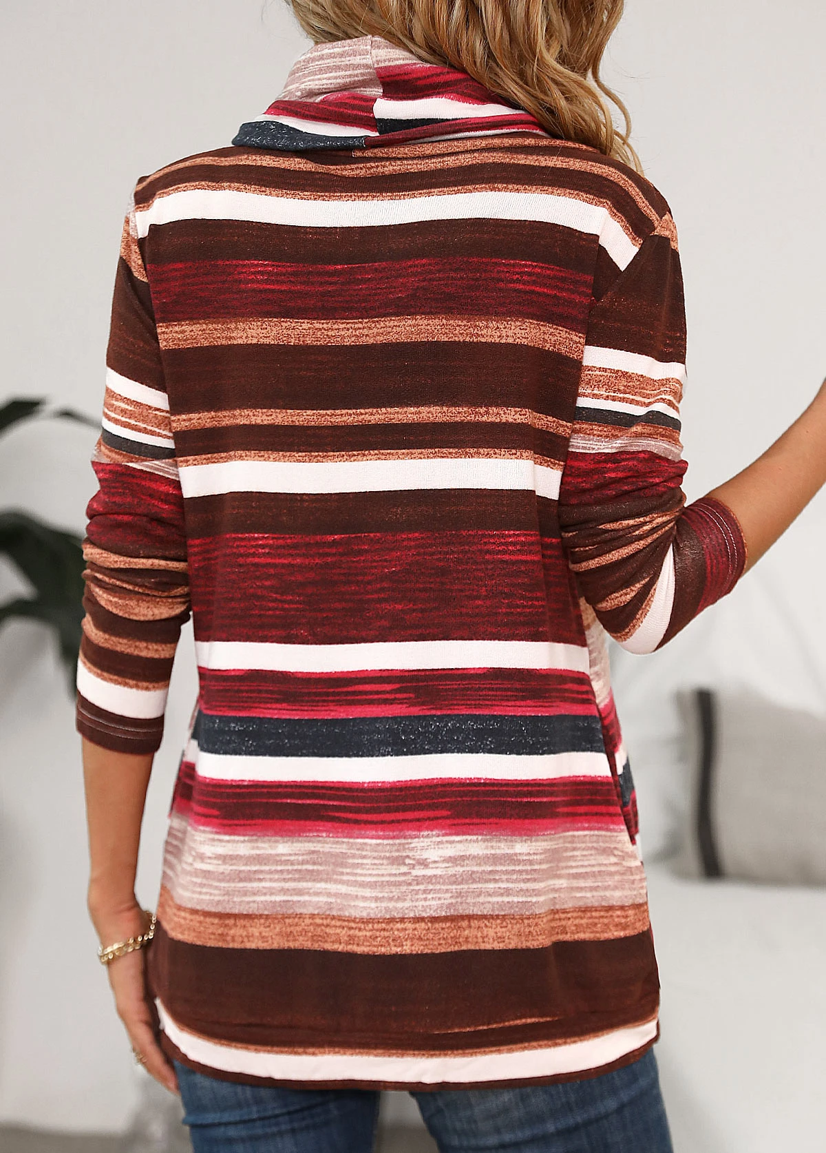 Be the first to review “Wine Red Pocket Striped Long Sleeve Cowl Neck Sweatshirt” Cancel reply